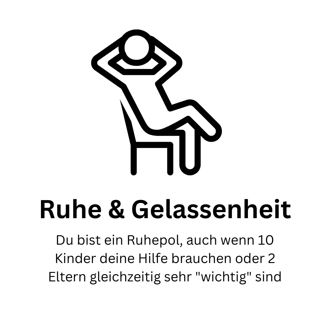 Du bist ein Ruhepol, auch wenn 10 Kinder deine Hilfe brauchen oder 2 Eltern gleichzeitig sehr "wichtig" sind
